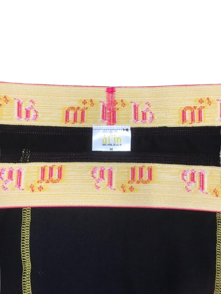 This ál’in 3 pack includes 3 pairs of our Obsidian Ember Boxer Briefs delivered in Premium Matte Black Packaging . Sophistication meets fire in Obsidian Ember. The deep black base is elevated with golden seams and a hot pink waistband, creating a sleek balance of elegance and edge. Luxurious, powerful, and timeless, these boxers are built for the modern icon who owns every room they walk into.